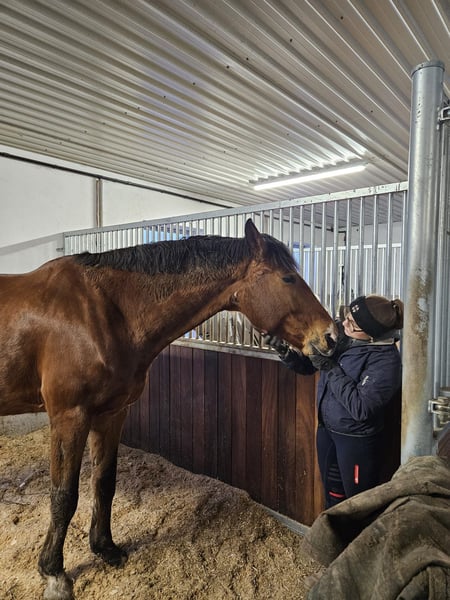 Te koop staat onze 9-jarige, bruin, groot gebouwd paard, onze ruin Fanta. 📌 Schofthoogte: 1,78 m 📌 Afstamming: LDB x Ginsberg II (zie eigendomsbewijs) Fanta overtuigt door: ✔ Zeer goede rijbaarheid – extreem licht in de dressuur ✔ Betrouwbaar en eerlijk in het parcours ✔ Ook geschikt voor springbeginners ✔ Absoluut helder van geest ✔ Nog niet gestart op wedstrijden (geen ambitie, niet gebrek aan kunnen) Door zijn groot formaat is hij ook zeer geschikt voor grotere of wat zwaardere ruiters. Tegelijkertijd kan een jonge, slanke ruiter hem uitstekend aan. Een paard dat met zijn eigenaar wil groeien – of het nu in de ambitieuze recreatie of met sportieve perspectieven is. Video’s op aanvraag