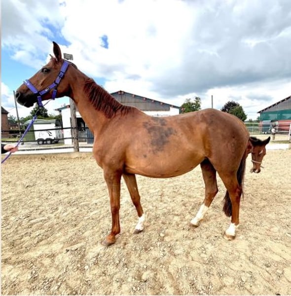 Verkaufe elegante Westfale-Stute – perfekte Zuchtpartnerin! Zum Verkauf steht eine wunderschöne Westfale-Stute, geboren im Jahr 2015. Sie präsentiert sich in einem beeindruckenden Dunkelfuchs-Farbton und hat ein Stockmaß von 165 cm. Als Zuchtpferd bringt sie wertvolle Abstammung und Potenzial mit. Diese zuverlässige und charakterstarke Stute ist ideal für Zuchtzwecke und bietet eine hervorragende Grundlage für die Weiterzucht. Sie ist gesund, gut erzogen und zeigt ein freundliches Wesen. Nach unseren Informationen wurde sie früher einmal angeritten, hierzu können wir jedoch keine verbindliche Aussage treffen. Bei Interesse stehe ich gerne für weitere Informationen und eine Besichtigung zur Verfügung.
