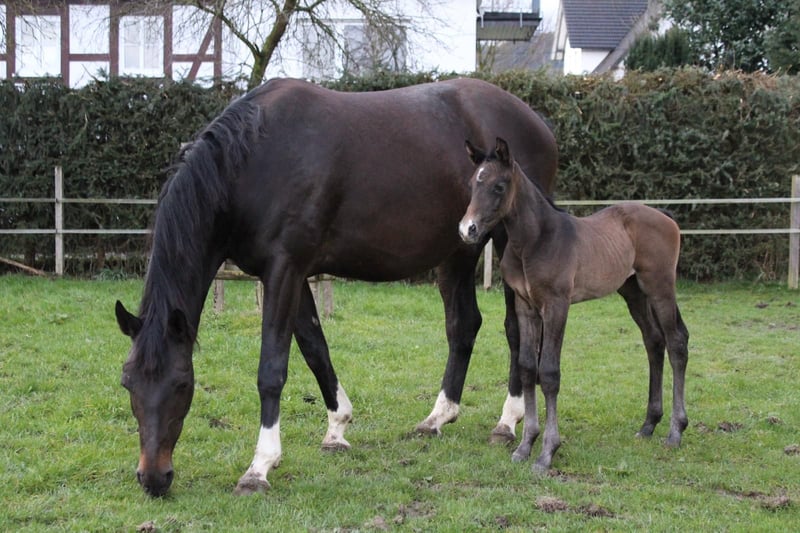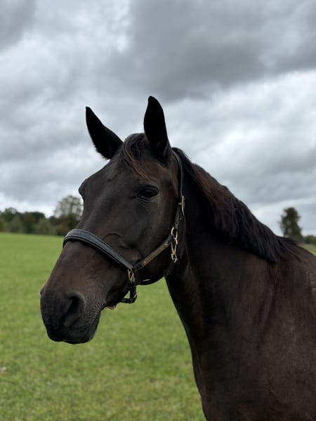 We are looking for a new home for our loving Westphalian mare Frida. Frida is 10 years old, is sired by Faveur, and has been with us since she was three years old. During this time, she has become a true family horse, impressing with her character and versatility. Frida has beautiful basic gaits and has already been presented at competitions in dressage and show jumping. However, due to an older healed injury, we wish for her to have a future without jumping. She is perfectly suited for dressage, leisure riding, or trail rides. She is vaccinated and regularly dewormed. We also have our horses checked by the dentist annually. As we can no longer dedicate enough time to Frida, she is currently being ridden by a 13-year-old girl. Therefore, she is suitable for teenagers but not for complete beginners. Due to her lineage, she is also well-suited for breeding and had a foal with us in 2023, which can also be viewed. In daily handling, Frida is a real treasure. She is blacksmith-friendly and loading-friendly, and currently goes barefoot. She is familiar with everything on our farm and is unfazed by tractors, cows, or dogs. As she is used to year-round pasture in a herd, we hope for her to continue in similar conditions. If needed, all equipment can be taken over. To prevent riding tourism, we charge a fee for trial rides, which will be deducted from the purchase price. Frida is a horse that you simply have to fall in love with. Therefore, for us, it's: home before price!