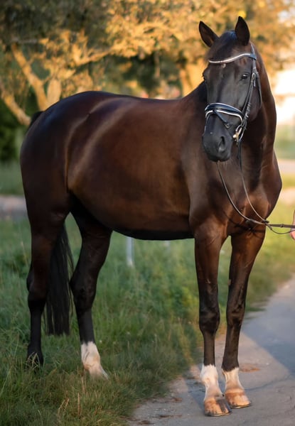 Westphalian mare, born May 24, 2014 – placed in dressage class A, started with L-level lessons – eligible for support We are offering a lovely Westphalian mare, born in 2014. She has achieved placement in dressage class A and has begun L-level training. She possesses a solid basic education, is familiar with gymnastics exercises, and has experience in ground work. She is well-behaved when hacking out. She has had limited experience in the open terrain alone, so she is looking for a confident rider with some experience to support her in this area. At competitions, she is confident and composed, performing as well as she does at home. In daily handling, she is friendly, uncomplicated, and is, of course, shoeable. Health status: - AKU from 2017 available - X-rays of the back from 2024 available - Annual dental check-up - Semi-annual osteopathic care She is not suitable for beginners and requires a secure, consistent rider who can continue her development. With proper training, she has great potential. Height: 1.70 m (16.1 hh) Pedigree: - Sire: All at Once - Dam: Finesse This is not a desperate sale; she is being offered solely due to lack of time and only to the best of hands.