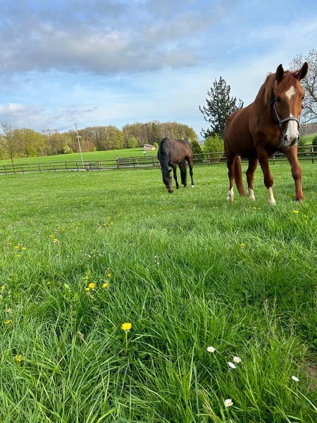 Samira ist sehr menschenbezogen, äußerst unkompliziert, mit einem ehrlichen Charakter. Als Reitpferd war sie leichtrittig, verfügte über 3 sehr gute Grundgangarten und überzeugte durch große Arbeitsbereitschaft. Sie hatte bereits drei Fohlen, wovon zwei noch bei uns am Hof stehen. Eine Stute davon wurde mit der Staatsprämie ausgezeichnet. Spirit of Samira ist westfälisch gezogen von Spirit of Westfalia, der hocherfolgreich im Dressursport unterwegs ist bis zum Intermediare I. Spirit of Westfalia stammt vom legendären Dressurvererber, Sandro Hit, ab und ist aus einer Staatsprämienstute gezogen, die wiederum mit Donnerhall und Rubinstein, keine minder bekannten Dressurvererber im Pedigree aufweist. Mütterlicherseits ist die Stute von Weltfeuer, der wiederum vom Stempelhengst Weltmeyer abstammt. Sami ist gesund, unkompliziert in der Haltung, aufmerksam im Umgang und gut herdenverträglich. Mit einem Stockmaß von ca. 1,72 m suche ich für sie ein liebevolles neues Zuhause, in dem sie weiterhin geschätzt und gut versorgt wird. Aktuell ist sie aus Zeitmangel nicht im Training.