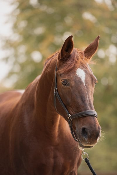 Ich muss leider meine 14 jährige Fuchsstute verkaufen, da mir die Zeit fehlt ihr gerecht zu werden. Diese Entscheidung fällt mir nicht leicht, da sie ein tolles, aber durchaus anspruchsvolles Pferd ist, von dem ich aber viel lernen durfte. Sie ist ca. 1,67m und seit 9 Jahren bei mir. Ich habe sie 5 jährig vom Züchter gekauft, da war sie gerade angeritten. Meine Stute ist definitiv kein Anfängerpferd. Sie möchte mitreden dürfen und zeigt was sie will und was sie nicht will. Dabei ist sie aber händelbar und nicht böse. Sie benötigt einen einfühlsamen und fairen Mensch, der mit ihrem Temperament umgehen kann, dann ist sie kooperativ und fein zu reiten. Sie wurde ausschließlich dressurmäßig gearbeitet. Auf Turnieren waren wir nicht und dahin möchte ich auch absehen, da sie ein stressanfälliges Pferd ist und ihr Wohlbefinden an erster Stelle stehen sollte. Ich bin mit ihr aber mal zu einem Auswärtstraining gefahren und das hat sie gut mitgemacht. Sie kennt Doppellonge und macht das sehr gut. Bodenarbeit haben wir angefangen und auch daran hat sie Spaß. Stangen bereiten ihr Stress, daher bin ich sie auch nie gesprungen und möchte dies auch für ihre Zukunft nicht, da sie im August 2020 aufgrund einer Trittverletzung auf der Weide eine Schulter-OP hatte. Dies ist aber ausgeheilt und sie ist voll reitbar. Zudem ist sie Asthmatikerin, aber durch Management in Form von täglichem Inhalieren mit Kochsalz, der Gabe von Plantagines und nassem Heu ist sie gut eingestellt und kommt sehr gut damit zurecht. Da sie einen hohen Muskeltonus und mit Verspannungen zu tun hat, bekommt sie täglich Zusatzfuttermittel für ihre Muskulatur. Das tut ihr sehr gut und wünsche ich mir auch, dass dies weiter so gehandhabt wird. Sie hat einen leichten Ton, der sie aber auch nicht einschränkt. Im Gelände ist sie aufgeregt, aber brav und je öfter man mit ihr rausgeht, desto entspannter wird sie. Ich bin mit ihr aber ausschließlich im Schritt spazieren gegangen oder geritten. Beim Schmied ist sie super artig und hat vorne zwei Eisen, die sie zwingend benötigt, da sie eine Fehlstellung hat. Hänger fährt sie nicht so gerne, aber mit entsprechendem Training bekommt man dies auch gut in den Griff. Sie ist Boxenhaltung mit täglichem Weidegang mit ein oder mehreren Artgenossen (auch im Winter) gewohnt. Sie kennt es aber auch im Winter auf den Paddock zu gehen. Aktuell steht sie in einer Paddockbox, die sie sehr liebt und den Paddock viel nutzt. Ich denke aber nicht, dass sie ein Pferd für den Offenstall ist, da sie ihre Ruhe zum Fressen benötigt. Alles in allem ist sie wie schon erwähnt ein anspruchsvolles Pferd, aber es lohnt sich die Zeit zu investieren. Ich würde mir für sie jemanden wünschen, der ihr diese Zeit geben kann und nicht zwingend das tägliche Reiten im Fokus hat, sondern sie vielseitig beschäftigt und ihre Bedürfnisse gut im Blick hat. Sie wird mit komplettem Zubehör abgegeben inklusive einem baumlosen Sattel mit dem sie sehr gut zurechtkommt. Um Reittourismus zu vermeiden, wird eine Gebühr von 20€/Reiten erhoben. Bei Fragen gerne melden.