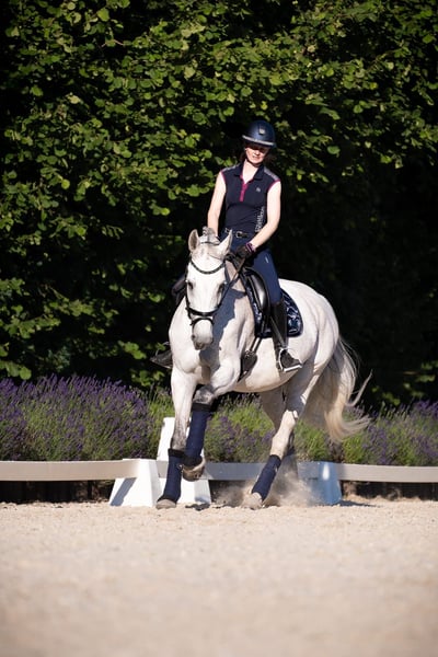 Wir suchen für unsere 13jährige Schimmelstute ein neues Zuhause. Hatte dieses Jahr eine Verletzung am Unterstützungsband, fängt aber gerade wieder mit leichter Trabarbeit an. Wir geben Sie als bedingt reitbar ab, hat aber laut Tierarzt eine günstige Prognose nach einem schonenden Antrainieren wieder für den Freizeitbereich einsetzbar zu sein. Aufgrund ihrer Turniererfolge und ihres ausgeglichenen und unkomplizierten Charakters aber auch als Zuchstute denkbar. Hatte bisher noch kein Fohlen. Abstammung: Cathanos (von Carthago) x Aldato (von Alme) Ist A** Springen siegreich, L Springen platziert und M Springen gelaufen, ebenso A* Dressur platziert. Amateurpferd, geht außerdem auch brav mit Ausbindern bei schwächeren Reitern. Schmiede- und Verladefromm, aktuell 4 mal beschlagen, ca. 1,73m Stockmaß. Kein zur Verfügung stellen, keine Ratenzahlung. Alle weiteren Informationen im persönlichen Kontakt. Bitte zunächst per Nachricht melden, wir sind schlecht telefonisch erreichbar.