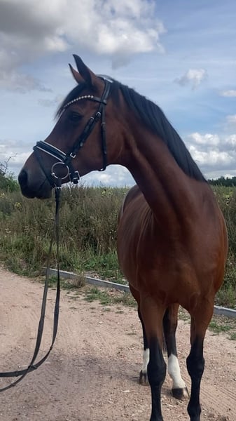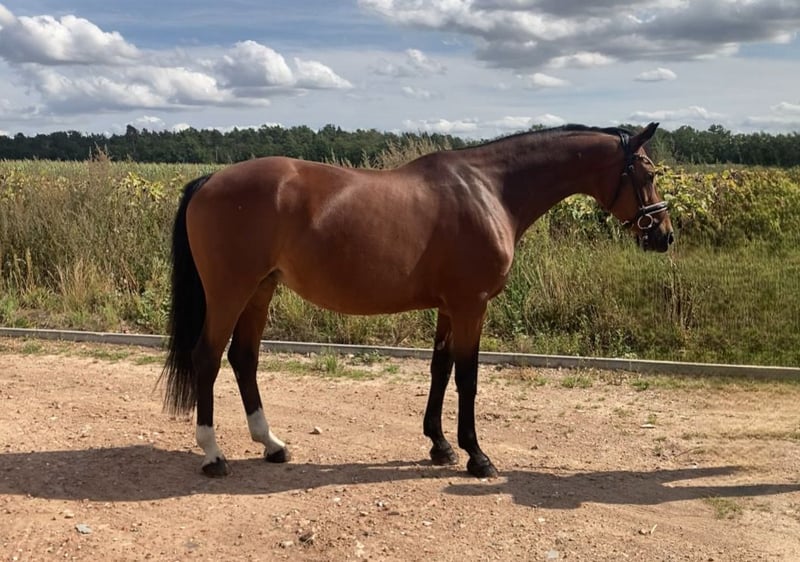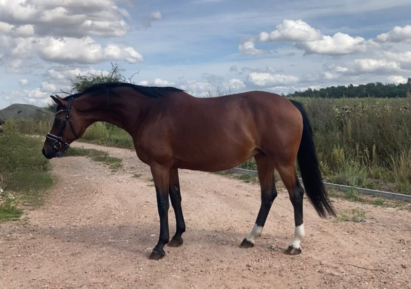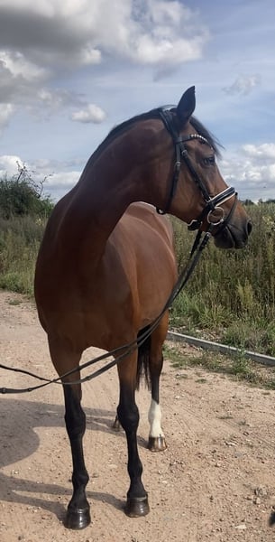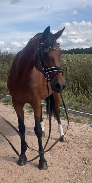 Very nice, 14-year-old mare by Ampere x Florestan for sale. Amica is 1.60m tall and an ideal horse for ladies/girls. She has been in breeding for the last few years and has produced great foals. Now she is being sold due to the reduction of the breeding program and is looking for a wonderful new home. She is very sweet to handle and also quite decent when riding. Currently, she is being ridden and is being brought back into work. In her younger years, she was successful in competition, competing up to M level in dressage. Whether for leisure, dressage, or breeding, with Amica, all doors are open.