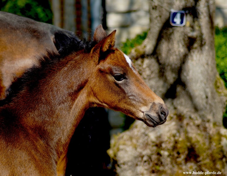 diese wunderhübsche qualitätsvolle Stute mit einem lieben Charakter und einem Gesicht wie ein Gemälde bietet eine Perspektive, die keine Wünsche offen lässt. Wir lieben sie, wenn sie wiehernd auf uns zu galloppiert , sich kraulen lässt und natürlich auch, wenn wir uns an ihrer Schönheit und ihrer überragenden Qualität erfreuen können.