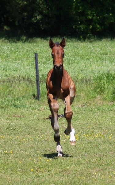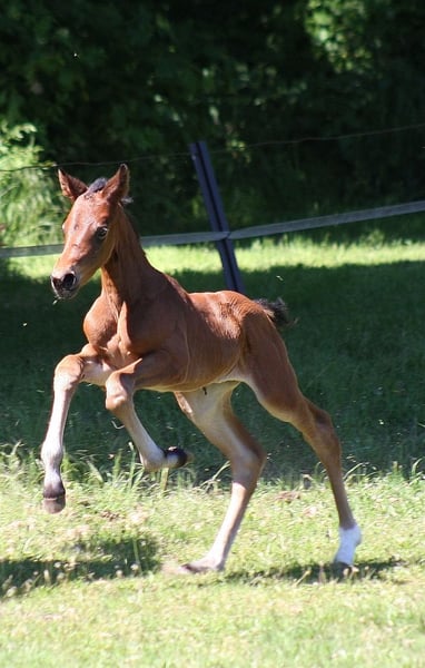 Verkaufsanzeige – Stutfohlen von Dark Dynamic x For Gold x Araconit 🌟 Zum Verkauf steht ein herausragendes, bewegungsstarkes Stutfohlen mit exzellentem Pedigree: Dark Dynamic x For Gold x Araconit – eine leistungsgeprägte Anpaarung, die keine Wünsche offenlässt. Das Fohlen überzeugt mit klarer Aufwärtstendenz in allen drei Grundgangarten, beeindruckender Mechanik und natürlichem Gleichgewicht. Typvoll und mit viel Präsenz steht sie im Hengsttyp, dabei korrekt im Fundament und mit viel Ausdruck. Mütterlicherseits stammt sie aus einer verbandsprämierten Stute, was ihre züchterische Qualität zusätzlich unterstreicht. Ein ideales Nachwuchspferd für Sport und Zucht, mit besten Voraussetzungen für eine erfolgreiche Zukunft.