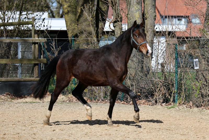 Diese junge charmante Stute bringt alles mit, was für eine künftige Karriere unter dem Sattel von Nöten ist. Charakterlich weiß sie durch ihre menschenbezogene und vor allem sehr unkomplizierte Art zu punkten. Sie überzeugt mit drei grundsoliden guten Grundgangarten. Ihre Geschwister verweisen bereits auf eine erfolgreiche Karriere in Zucht und Sport. So war ihr Bruder Scotaloo von Secret fand als gekörter Hengst sein Zuhause auf der Deckstation von Andreas Helgstrandt. Seine Vollschwester war gefeierte Siegerstute der Schau auf dem Dobrock und ist auf Sprung in die schwere Klasse. Aus der direkten Mutterlinie stammen außerdem eine ganze Reihe von internationalen Dressurpferden wie Ronda oder auch der Reservesieger der Oldenburger Körung in Oldenburg So Perfect. Vater Viva Vegas führt das aktuell so begehrte Blut des Viva Gold. Er war Sieger des dänischen Jungpferdechampionats 2024 mit 97,6 %. Er erhielt 10 für Galopp, Rittigkeit und Kapazität, 9,6 für Trab und 9 für Schritt. Video auf Anfrage. Nur aufgrund von Bestandsreduzierung in gute Hände abzugeben.