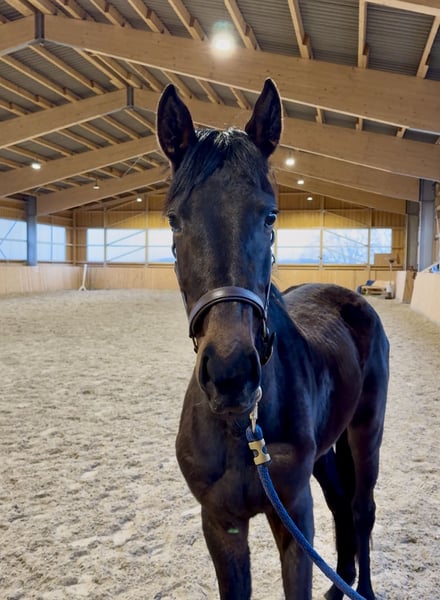 Liebevoll aufgezogene 3-jährige Stute sucht förderndes Zuhause Schweren Herzens suchen wir für unsere selbstgezogene 3-jährige Stute ein neues, passendes Zuhause. Sie ist vom Charakter her ein absoluter Schatz: sehr lieb, menschenbezogen und im Umgang stets brav. Eine junge Stute mit einem ganz tollen Wesen, die ihrem Menschen viel Freude bereiten wird. Die Mutter war selbst erfolgreich im Sport und bis zur Klasse S platziert. Sie ist altersentsprechend noch roh und wurde bisher nicht angeritten, kennt aber den täglichen Umgang und zeigt sich dabei stets unkompliziert und freundlich. Körperlich war sie schon immer eher klein und schmal gebaut. In einer größeren Herde geht sie dadurch schnell unter, weshalb wir uns für sie ein Umfeld wünschen, in dem sie individuell wahrgenommen und gefördert wird. Daher wünschen wir uns für sie ein Zuhause bei erfahrenen Pferdemenschen, die Freude daran haben, sie individuell zu fördern und ihr die Zeit zu geben, die sie braucht. Für uns steht ganz klar im Vordergrund, dass sie in gute Hände kommt, wo ihr Wohl an erster Stelle steht und sie in Ruhe weiter reifen darf.
