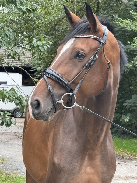 3-year-old mare by Ellis x Londontime – Promising young prospect with potential This striking 3-year-old mare, bred from our own stock, impresses with three above-average, large-scale basic gaits and a very good work ethic. Elsa, with a current height of 16.1 hh, has been gently backed and consistently shows motivation, nerves of steel, and a clear head under saddle. She delights with a spacious, rhythmical walk, a lively, active trot, and a well-balanced, uphill canter. Particularly noteworthy are her lightness of foot and refined contact – Elsa is easy to handle and makes it simple for the rider to develop her correctly. With her impressive quality and modern appearance, she possesses everything needed for a successful career in dressage. Elsa has been regularly presented to the farrier, dental checked and treated, and dewormed appropriately. She is also loading well and shows a very uncomplicated demeanor in daily handling. Anyone looking for a promising young horse for a future in top-level sport will find what they seek here.