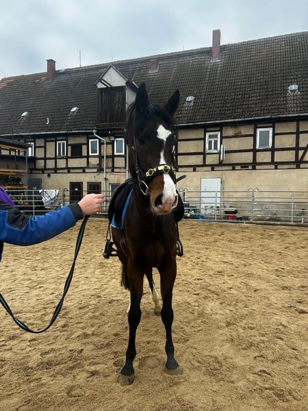 This charming mare impresses with her honest and calm temperament, as well as her perfectly correct conformation. She is currently in the process of becoming a riding horse, already familiar with saddle, bridle, and lunging, which she handles with confidence and composure without appearing dull. She ranks in the middle of her herd and is always the first to go full speed on turnout... making the recent incidental finding during her first vaccination all the more surprising. A heart murmur was detected; however, she shows no other symptoms such as reduced stamina, developmental delays, or swelling. For this reason, we have decided to continue her training and offer her at a more affordable price. She would be suitable for dressage as well as show jumping, but given her current condition, I would not recommend taking her to a competition course without further examination, and a detailed cardiological assessment would be advisable. Price will increase with further training. Transport and health check-up can be arranged upon request. X-ray examination (TÜV) can be performed; costs to be borne by the buyer.