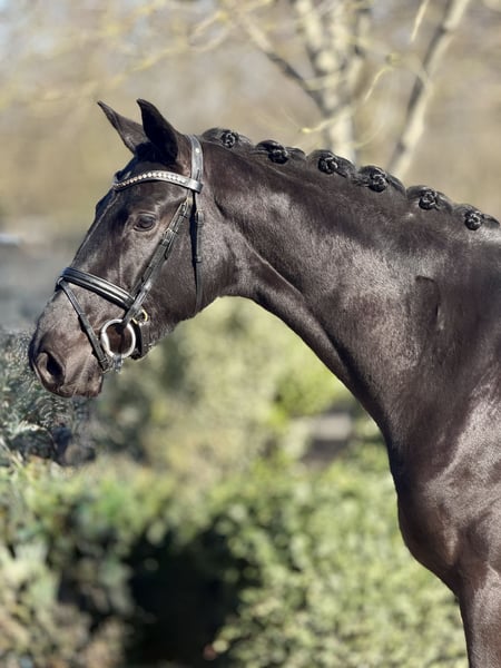 Diese elegante Rappstute (2023, ca. 167 cm) überzeugt mit moderner Ausstrahlung, viel Charme und einer hervorragenden Dressurabstammung. Sie wurde Ende letzten Jahres schonend angeritten und zeigt sich seitdem aufmerksam, lernwillig und stets arbeitsbereit. Dabei ist sie besonders menschenbezogen und lieb im täglichen Umgang – eine junge Dame, die gefallen möchte und mit positiver Einstellung an neue Aufgaben herangeht. Mit Taurus auf der Vaterseite bringt sie modernes Bewegungspotenzial mit, während Damon Hill mütterlicherseits für bewährte Rittigkeit, Qualität und Leistungsbereitschaft steht – beste Voraussetzungen für eine erfolgreiche Zukunft im Dressurviereck. Schmiede- und verladefromm, klar im Kopf und mit viel Entwicklungspotenzial – eine charmante Nachwuchsstute für ambitionierte Reiter. Gute Röntgenbilder vorhanden. 📍 Standort: Münster (NRW) Alles weitere gerne auf Anfrage