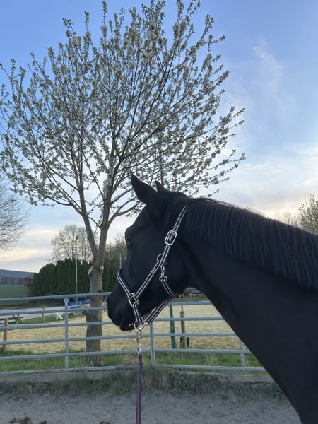 Estoy buscando un nuevo hogar para mi yegua Quintana, de 5 años. La compré como una promesa para el futuro, ya que actualmente solo tengo un pony y quería algo más joven y también un poco más grande. Sin embargo, he tenido que darme cuenta de que simplemente no somos compatibles (es mi primera yegua joven y necesita a alguien con más experiencia). Debido a su linaje, también puedo imaginarla muy bien en la cría. Ella ya sufrió una lesión, pero se ha recuperado completamente y no le afecta en nada. Se lleva muy bien con nuestro grupo de “retratados” (cuatro caballos castrados y dos yeguas). Además, está herrada y no muestra miedo a tractores, perros, etc. Quedo a disposición para cualquier consulta.