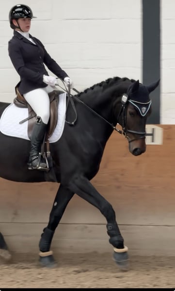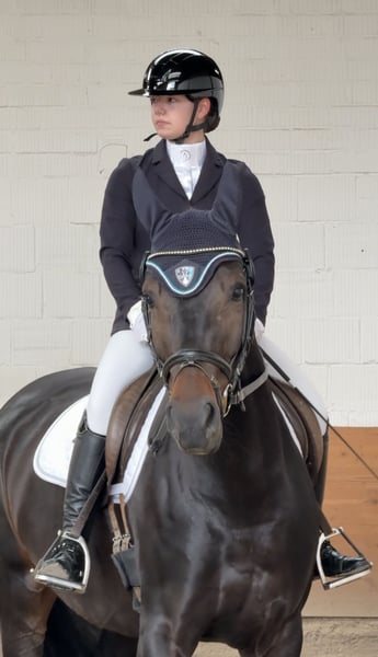 Dia est une jument de cinq ans, issue de Dodo Weihgand (Diamond Hit) par Weihegold. Mère de Drakdream (Donnerhall). Elle possède un caractère très doux et est également adaptée aux cavaliers moins expérimentés. C’est une magnifique jument de dam, légère et non électrique. Elle est prête en dressage A et aime également faire des sorties en extérieur. Des radiographies datant de deux ans sont disponibles et peuvent être envoyées. Lors de sa première compétition, elle s’est immédiatement classée en dressage et en saut d’obstacles, avec une cavalière de niveau 6. Venez la voir, essayez-la et tombez-en amoureux.