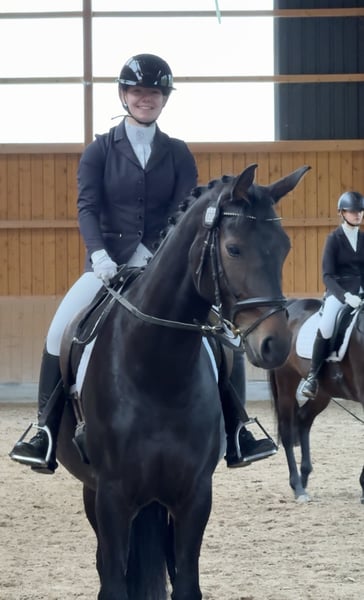 Dia ist eine fünfjährige Stute, abstammen von Dodo Weihgand = Diamond Hit aus der Weihegold. Mutter von Drakdream (Donnerhall) sie hat einen super lieben Charakter, ist auch für schwächere Reiter geeignet. Sie ist ein ganz tolles Damen Pferd, leichtfüssig und nicht elektrisch. Sie ist A Dressur fertig und geht gerne ins Gelände. Röntgenbilder von vor zwei Jahren sind vorhanden und können verschickt werden. Sie war auf ihrem ersten Turnier sofort in Dressur und Springen platziert, mit einer LK 6 Reiterin. Einfach kommen, probereiten und verlieben.