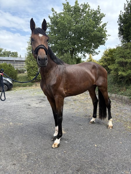 5-year-old mare by Vivino x Fidertanz 3 very good basic gaits Completely unflappable and composed, this mare leaves her rider speechless every day. Her willingness to learn and work goes hand in hand with the right forward drive, so you only need to think, even with her current level of training. This mare simply wants to do everything right and presents herself in a flawless appearance. Not mareish at all. At her second competition, she placed 4th in the Dressage Horse A class with plenty of potential for improvement. Top young horse for further training directly from the breeder, looking for an ambitious rider for continued education. But also suitable for leisure/hobby riders due to her cool demeanor. Also interesting for breeding (eventually), as she had one foal already at 4 years old. Just watch the videos; they answer all questions. Farrier and loading-friendly (trailer and transporter) Used to pasture/paddock No known illnesses/defects or similar. She does not receive any medications or supplements. No X-rays available yet, as they were not needed. Please call or WhatsApp 01739002724 To protect this exceptional horse from tourism and only for serious inquiries, a fee of €30 will be charged for trial rides.