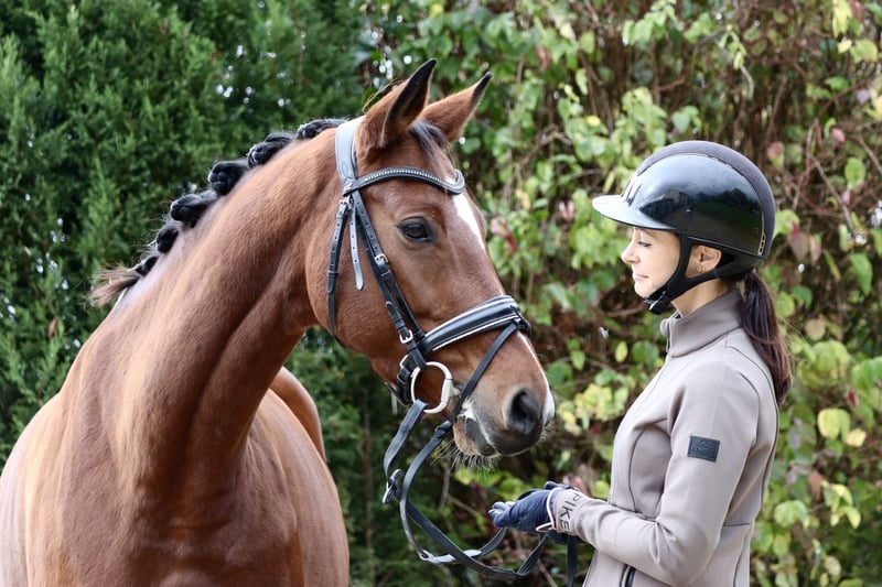 Pour notre cliente, nous proposons cette petite princesse en mandat. C’est une excellente opportunité pour tous les cavaliers de loisir ambitieux ♥️ Cette superbe jument de taille dame de 168 cm connaît tout ce qu’un cheval doit connaître. Elle est ferrée et habituée au défilé en remorque, connaît la carrière ainsi que le terrain, et bien sûr, le paddock. Elle tolère d’être rasée en hiver et apprécie les couvertures chaudes et douillettes. En dressage, elle maîtrise toutes les figures des niveaux A et L, et a déjà participé à quelques compétitions, mais rarement. Il n’y a pas de « hobbies indésirables » comme la dérobade, le piétinement ou autres. Un certificat de santé récent atteste de sa parfaite condition physique, avec contrôle vétérinaire à l’appui. Grâce à son excellent pedigree, elle pourrait également intéresser pour la reproduction :) toutefois, elle n’a pas encore été utilisée en élevage. Nous pensons que cette jument ne convient pas totalement aux débutants complets, car elle n’a pas encore été en contact avec ce public, mais elle s’entend très bien avec des cavaliers moins expérimentés. Elle cherche une famille de rêve avec des conditions optimales et beaucoup de carottes 😉. Pour toute question, nous restons à votre disposition à tout moment. Les essais en main sont possibles 7 jours sur 7. Veuillez noter qu’une participation de 40 € est demandée pour l’essai, montant qui sera bien entendu déduit en cas d’achat.