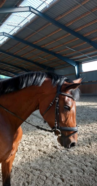 leider haben wir unsere Soleil aus dem Sport nehmen müssen (ehrliche Auskünfte gerne bei ernsthaftem Interesse persönlich) Ende März hat sie ein wundervolles Fohlen vom Spotilas problemlos gebore das ich hier auch inseriert habe. Die Stute ist brav im Umgang und freundlich zu Menschen. Sie hatte beim ersten Mal besamen aufgenommen und ist jetzt von Oranje (Deckstation Martin Determann) besamt worden. Ich gebe diese wundervolle Stute als Altergründen nur in allerbeste Hände ab.