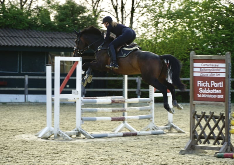 Zum Verkauf steht eine 2018 geborene, schwarzbraune Dressurstute von Zoom, die sowohl im Dressurviereck als auch beim Springen überzeugt. Die Stute ist ca. 1,75 m groß und verfügt über drei herausragende Grundgangarten mit viel Schwung, Raumgriff und natürlicher Balance. Sie ist L-sicher ausgebildet und zeigt sich beginnend in M-Lektionen talentiert und motiviert. Auch sportlich konnte sie bereits überzeugen: • A-Dressur gewonnen mit 7,8 • Stil-A platziert mit 8,4 Neben ihrer Dressurveranlagung zeigt sie sich freudig, aufmerksam und talentiert beim Springen. Sie springt mit Übersicht, guter Technik und ausreichend Vermögen, wodurch sie sich auch ideal als Vielseitigkeits- oder Allroundpferd anbietet. Die Stute ist sehr klug und lernwillig, versteht neue Lektionen schnell und bringt ein enormes Bewegungspotenzial mit. Sie wünscht sich einen erfahrenen Reiter, der ihre Qualität weiter fördert und ausbalanciert einsetzen kann. Im Training L Parcours bereits mit Übersicht bewältigt. Kleinere tierärztliche Befunde liegen vor, schränken die sportliche Eignung nicht ein. Ein spannendes Nachwuchspferd für ambitionierte Reiter, die ein hochwertiges Dressurpferd mit zusätzlicher Springqualität suchen.
