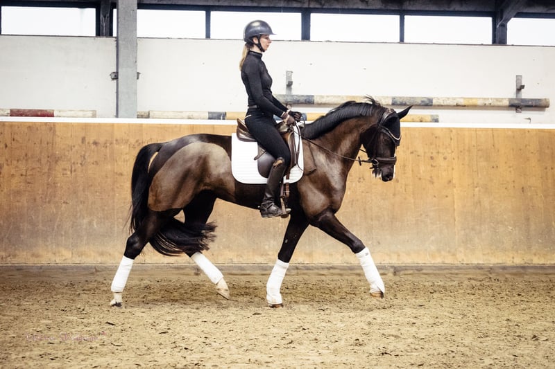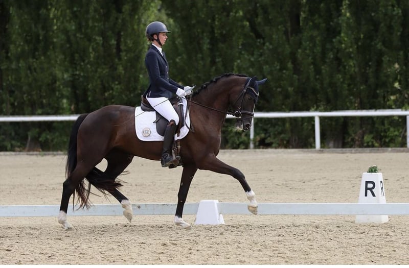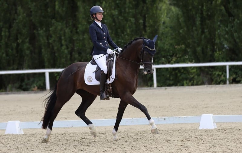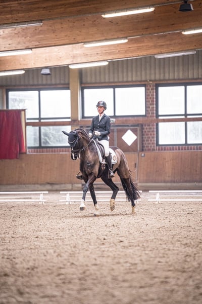 Lillie (Turniername Lillie Löwenherz) ist 8 Jahre und 1,67m. Sie ist doppelveranlagt von Little Fauntleroy x Pik Labionics und ein richtiger Allrounder: sie hat Springpferde A und Stil A mit 8er Noten gewonnen und ist Reitpferde, Dressurpferde A sowie A* und A** Dressur bis 8,0 vorne platziert und die ersten Runden auf L Niveau gelaufen und war auch hier direkt nur 0,1 an der ersten L Platzierung vorbei. Sie ist sowohl im Umgang als auch unterm Sattel super lieb, lässt sich auf dem Turnier genauso entspannt wie zuhause Händeln und geht problemlos überall vorbei. Verladen etc ist natürlich auch absolut kein Thema, dauert 2 Sekunden. Aufgrund der Doppelveranlagung könnte ich sie mir auch gut in der Vielseitigkeit vorstellen. Lillie hat Go, ist sensibel und sehr fein zu reiten und benötigt deshalb einen erfahrenen Reiter mit dem entsprechenden Gefühl im Sattel. Standort ist Arnsberg. Für ein Probereiten werden 35 Euro berechnet, die beim Kauf verrechnet werden.