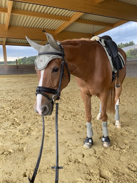 This beautiful 9-year-old Westphalian mare is looking for a new home. She is not a beginner horse and enjoys being worked extensively multiple times a week. She is trained up to dressage level L and has also competed in this class. Currently, she is kept as a pure leisure horse. She has a lot of potential but also requires appropriate and sufficient training. In her current home, she has daily turnout (in winter, a paddock) and is kept in a species-appropriate manner, regularly vaccinated, dewormed, had her teeth done, and sees the farrier regularly. She is being sold due to time constraints and a reduction in the number of horses. A good home is more important than the price! No pure box stall housing! Pedigree: Sir Heinrich (Old) x Belissimo - very good papers and also suitable for breeding. She has already had a foal and was a very good mother. Please no inquiries for "available for lease." Serious inquiries only. For more information, videos, or details about her pedigree, please feel free to contact us.