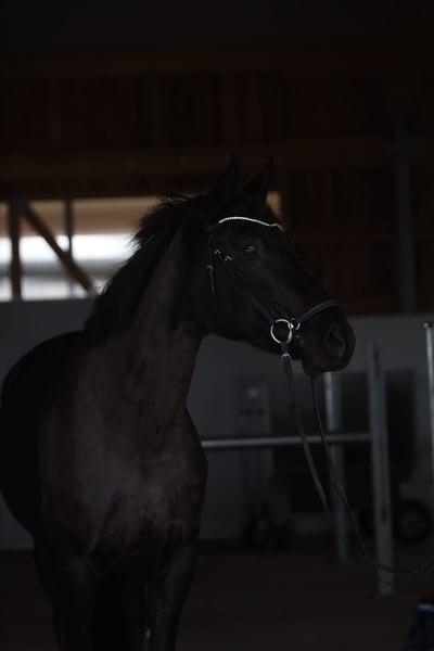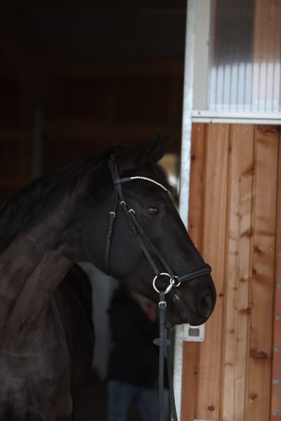 Met pijn in het hart zoeken wij voor onze „Zwarte Parel“ een nieuw liefdevol thuis, omdat de interesses van onze dochter veranderd zijn. Deze mooie zwartbruine Westfaalse/Trakehner merrie werd geboren in maart 2017 en overtuigt door haar aansprekende uitstraling en haar temperament. De dochter van Schwarzgold is voorzichtig onder professionele ruiters opgeleid en heeft zich kunnen plaatsen in dressuurwedstrijden van klasse L. In de zomer van 2023 hebben wij haar direct van de fokker gekocht, waar ze nog steeds op haar erf staat. Haar moeder was succesvol tot en met de zware klasse in de dressuursport. Parel is een brave, gevoelige merrie en beheerst de oefeningen tot en met klasse L. Ze kan oefeningen zoals schouder-in, traversale en halve traversale. Onze dochter rijdt regelmatig dressuurles, maar heeft geen interesse in wedstrijden, waardoor de gemotiveerde merrie de afgelopen twee jaar niet meer op concours is geweest. Sinds haar aankoop wordt ze continu begeleid door een professionele ruiter. Parel gaat heel graag het bos in en is daar betrouwbaar. Ze kent stang- en cavalettiwerk, dubbellongeren en grondwerk. Parel wordt regelmatig gevaccineerd, ontwormd en routinematig door de tandarts gecontroleerd. De laatste controle (07/2023) was zonder bijzonderheden. Parel is gewend aan dagelijks weilandgang en meerdere uren paddocktijd, momenteel samen met twee andere merries. De uitrusting kan bij interesse worden overgenomen, waaronder twee zadels van Passier. Voor meer informatie staan wij graag tot uw beschikking. Contact met de fokker is eveneens mogelijk. Bezichtiging en proefritten kunnen in overleg plaatsvinden. Bij interesse graag via WhatsApp +49 171 1972184, verdere video’s op aanvraag.