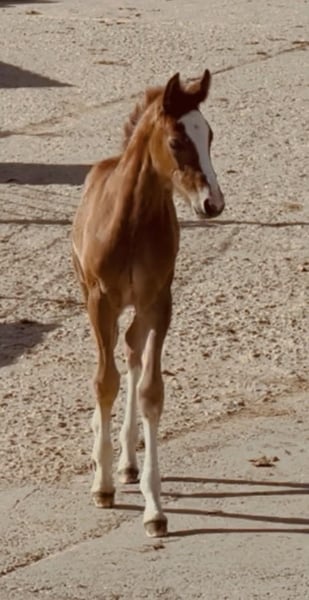 Ein sehr schickes Stutfohlen! Der Vater wird aktuell von uns selber ausgebildet und zeigt dabei sehr viel Qualität! Er ist der Vollbruder zu Highway TN. Die Mutter wurde nur angeritten und sprang einen kleinen Parcour. Sie kommt aus einem guten Mutterstamm.