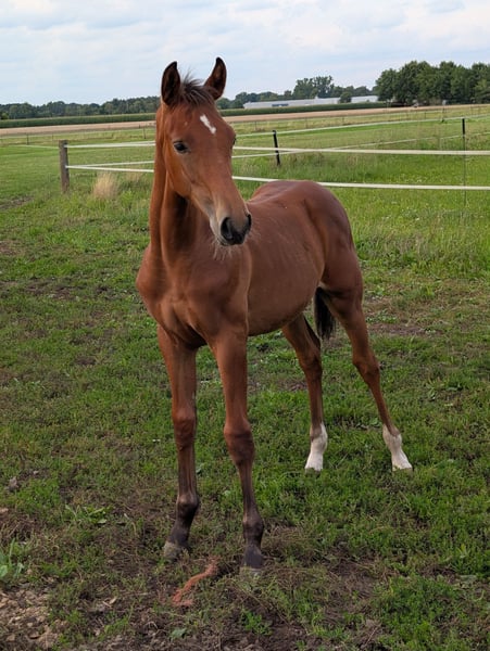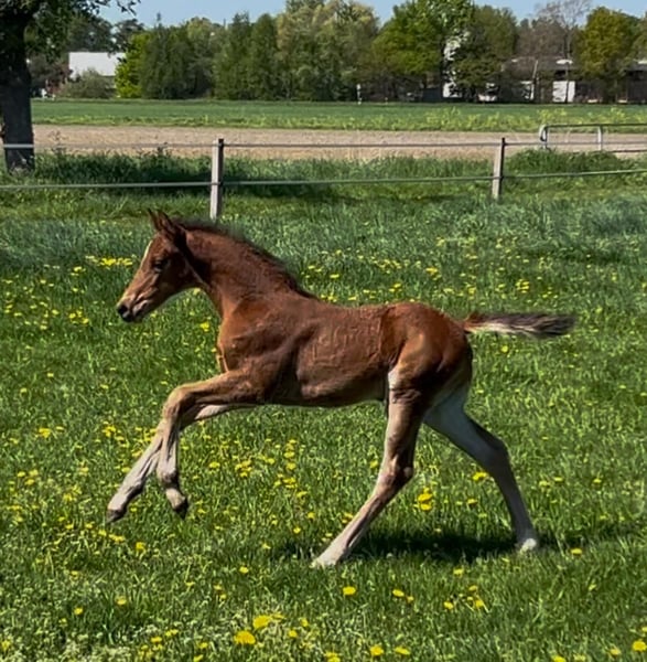 Do It is a beautiful colt by Diathago x Roh Magic x Barring. He is very people-oriented, friendly, and open-minded, and has three good basic gaits. Due to his lineage, he is not only interesting for show jumping but also for eventing. The mother herself was presented in young horse competitions in cross-country and dressage before going into breeding. Diathago was successful up to the advanced level in show jumping. Do It is growing up in a herd environment and is gradually getting to know everything a foal needs to learn. For questions, please feel free to contact after 5 PM at: 0170/2463012.