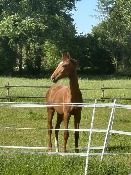 Wunderschöner vielversprechender Dubkelfuchs Hengst. Ich freue mich meinen vielversprechenden Westfale Hengst vorstellen zu dürfen. Geboren im Jahr 2024, überzeugt er durch seine elegante Erscheinung und seine vielversprechende Abstammung. Mit einem Stockmaß von aktuell 162 cm hat er bereits jetzt eine ansprechende Größe für den Dressursport und zeigt ein harmonisches, gut proportioniertes Exterieur. Geschätztes Endmass von verschiedenen Tierärzten wird wohl bei ungefähr 180cm liegen. Da ich für ihn einfach zu klein bin steht er zum Verkauf. Sein dunkelfuchsfarbenes Fell unterstreicht seine edle Ausstrahlung und macht ihn zu einem echten Blickfang. Durch seine hervorragende Abstammung bringt er wertvolle genetische Voraussetzungen für eine erfolgreiche Karriere im Dressurviereck mit. Dieser junge Hengst bietet ein super Fundament und unglaublich tolle Gangarten mit was großes erhoffen lässt. Fohlen ABC hat er gelernt, aktuell ist er im Wachstum und da fällt ihm das Hufe geben nicht so leicht. Auch testet er aktuell mit seinen fast 2 Jahren gerne, wer das Sagen hat. Er braucht definitiv einen Menschen, der sich im Umgang mit Jungpferde und Hengsten auskennt. Bei Interesse freue ich mich auf Ihre Kontaktaufnahme, um weitere Details zu besprechen und einen persönlichen Eindruck zu ermöglichen.