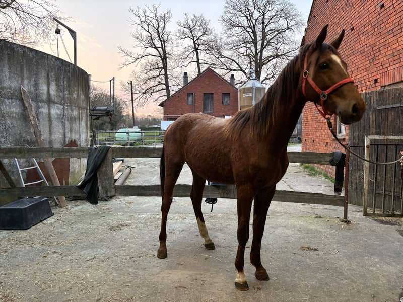 Wunderschöner vielversprechender Dubkelfuchs Hengst. Ich freue mich meinen vielversprechenden Westfale Hengst vorstellen zu dürfen. Geboren im Jahr 2024, überzeugt er durch seine elegante Erscheinung und seine vielversprechende Abstammung. Mit einem Stockmaß von aktuell 162 cm hat er bereits jetzt eine ansprechende Größe für den Dressursport und zeigt ein harmonisches, gut proportioniertes Exterieur. Geschätztes Endmass von verschiedenen Tierärzten wird wohl bei ungefähr 180cm liegen. Da ich für ihn einfach zu klein bin steht er zum Verkauf. Sein dunkelfuchsfarbenes Fell unterstreicht seine edle Ausstrahlung und macht ihn zu einem echten Blickfang. Durch seine hervorragende Abstammung bringt er wertvolle genetische Voraussetzungen für eine erfolgreiche Karriere im Dressurviereck mit. Dieser junge Hengst bietet ein super Fundament und unglaublich tolle Gangarten mit was großes erhoffen lässt. Fohlen ABC hat er gelernt, aktuell ist er im Wachstum und da fällt ihm das Hufe geben nicht so leicht. Auch testet er aktuell mit seinen fast 2 Jahren gerne, wer das Sagen hat. Er braucht definitiv einen Menschen, der sich im Umgang mit Jungpferde und Hengsten auskennt. KASTRATION IST IN PLANUNG, WER AN IHM ALS HENGST INTERESSE HAT SOLLTE SICH BITTE ZEITNAH MELDEN. Die Kastration ist nur, da hier alle Pferde im Sommer gemeinsam raus kommen und darunter auch die Mutter ist weshalb keine Hengste in die Gruppe können. Er ist weiterhin super artig als Hengst! Bei Interesse freue ich mich auf Ihre Kontaktaufnahme, um weitere Details zu besprechen und einen persönlichen Eindruck zu ermöglichen.