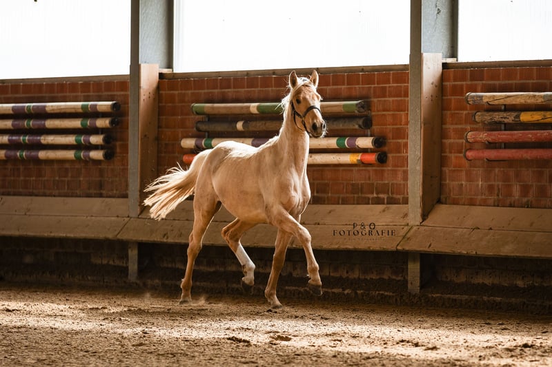 Ein echter Hingucker mit Zukunft – Palomino Nachwuchstalent ! Manchmal fällt es besonders schwer… und genau so ein Pferd ist dieser 2-jährige Youngster. Ein absolut typvolles Nachwuchspferd in besonderer Farbe (Palomino) – mit ganz viel Ausstrahlung und noch mehr Potenzial und eine Abstammung, die begeistert: Qaside MD x Sir Heinrich x Londonderry x Weltmeyer, besser lässt sich modernes Dressurblut kaum kombinieren. Er bringt alles mit, was man sich für die Zukunft wünscht; tolle Bewegungsqualität, modernes, sportliches Modell und er ist klar im Kopf und absolut menschenbezogen. Typisch für die Qaside MD-Nachkommen zeigt er sich super lieb, freundlich und unkompliziert im Umgang. Warum wir ihn abgeben? Für unsere Hengststation ist er als zukünftiger Deckhengst nicht vorgesehen, da wir sein Vater, Großvater sowie seinen Onkel bereits selbst auf Station haben. Umso mehr wünschen wir uns für ihn einen Platz, an dem sein besonderes Gesamtpaket erkannt und gefördert wird. ❤️