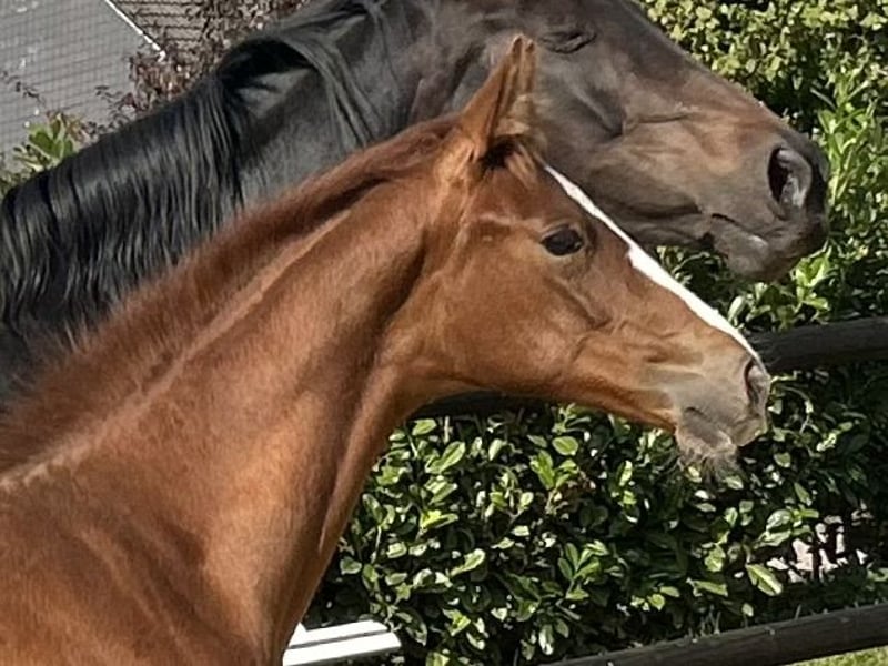 For sale is our "Bumblebee," sired by Benicio x Rock Forever x Weltmeyer x Wendland. Bumble is a promising Westphalian-bred colt, born at the end of May 2025, with 3 excellent gaits. He impresses with his composure, his elasticity, and his flawless conformation, and he will bring a lot of joy to his dressage rider. Bumble knows the basics of foal handling and is well-behaved. He has a friendly, people-oriented character and is well-socialized within our mare herd with our total of 4 foals. With his paternal lineage from Benicio, he brings pure rideability blood. Bumble's mother, Roxy, has already produced 2 licensed sons, one of whom was the Westphalian Champion for 5-year-olds and placed among the top 10 in the finals of the Bundeschampionat in the same year. All of the mare's offspring are extremely willing to perform and rideable. Our foals are regularly dewormed and introduced to the farrier, are "in-hand," and grow up with family contact, receiving the best mineral feed (Hämolytan, Mega-Base, and Foal Starter from Pavo). If you are interested, we look forward to a call and a visit! Bumble can also stay with us in training if needed.