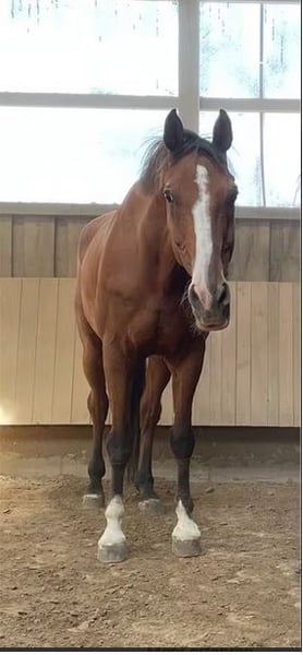 Large, gentle gelding for groundwork or leisure for sale. Unfortunately, he has a handicap that prevents him from being ridden properly. Further details upon request.