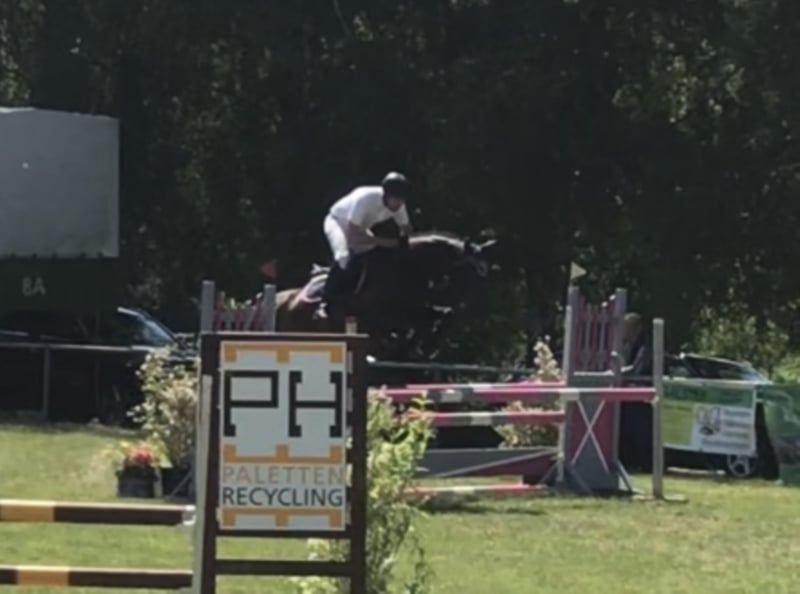 Caja is a very lovely mare who is fun every day. It is easy to ride and very good, therefore also suitable for juniors or amateurs. She jumps wealthy and cautiously. She was already in 2nd place in Spf. A with 8.3.