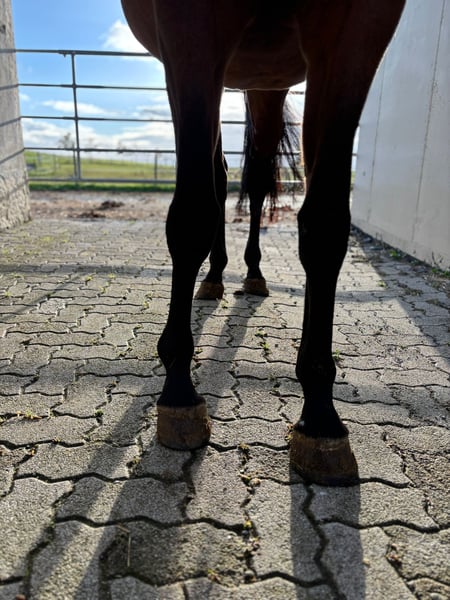 Aus Gründen der Reduzierung unseres Pferdebestands bieten wir Ihnen direkt vom Aufzüchter an: Bildhübsche bewegungsstarke 6-jährige braune Stute mit leichte gedrehtem rechten Vorderbein (siehe Fotos). Bisher ein Fohlen zur Welt gebracht. Bei uns aufgewachsen, bisher gesundheitlich absolut robust. Privatverkauf als Beistell- / Bodenarbeitspferd. Nur in gute Hände mit Wunsch nach Paddockbox und Auslauf abzugeben. Bitte Kontaktaufnahme unter whats app +49 173 8500776.