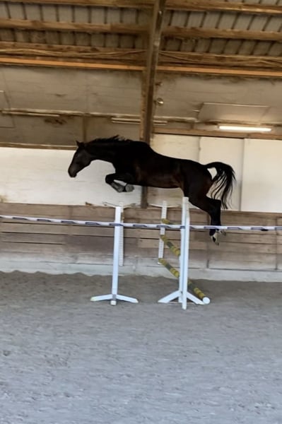 Wir suchen im Auftrag des Züchters für "Uschi" ein neues Zuhause. Uschi begann ihre ersten Schritte als Reitpferd bei uns, wurde behutsam angeritten und von uns bis jetzt ausgebildet. Sie steht seit 4 Jahren bei uns und ist fester Bestandteil unseres Teams. Im Laufe der Ausbildung mussten wir jedoch feststellen das Uschi dem Turnierstress nicht gewachsen ist. Sie ist bereits mehrfach platziert bis M* 1,25 m und auch schon M** 130 null gelaufen. im Training sind Höhen von 1,50 m kein Problem, Sie kann es aber auf dem Turnier nicht abrufen. Das kann mit Zeit und Ruhe, anderen Abläufen evt. besser werden, aber aktuell sehen wir sie nicht als Turnierpferd im großen Sport. Bei der Dressurarbeit ist sie mit Eifer dabei, brauch aber noch Zeit um mit Ihrem großen Körper voll klarzukommen. im Gelände ist sie ebenfalls geritten und auch jederzeit zu händeln. Uschi hat ein Sommerekzem, das haben wir aber mit entsprechendem Management Symptomfrei. Sie hat 1 Befund beim Tüv, der Sie nicht einschränkt aber eben da ist. Aufgrund dieser gesamten Konstellation ist Uschi weit unter Wert abzugeben. Sie kann jederzeit Probegeritten und besichtigt werden.