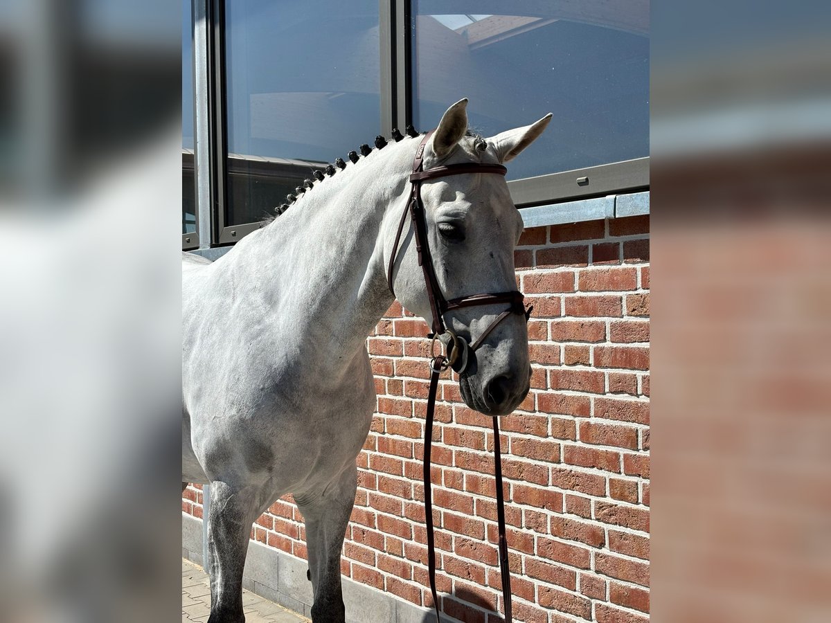 We are looking for a perfect home for our beautiful grey gelding. He is very well-mannered, easy to ride, and has a high level of training in dressage. An absolute character horse both at home and at competitions. He has placed up to S* level, has won several M classes, demonstrating his reliability, and competed at the World Championship for Young Jumping Horses when he was 6 years old. We can very well imagine him as a horse for a transition or a beginner, as he is never headstrong or unruly. A great horse with a lot of potential to develop together and have fun. A good vet check is available.