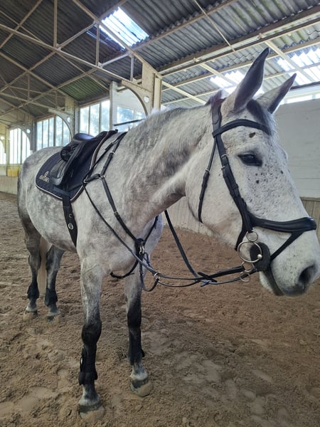 Ich bin in the Mood Z ist ein 9-jähriger Zangersheide-Geländer, mit einer Stockmaß von 173 cm (17,0 Hand). Er ist ein wunderschöner, dappled grey mit einem sanften Ausdruck und einem sehr freundlichen Auge. Er ist ein unglaublich liebevoller und menschenbezogener Wallach, der echte Freude an menschlicher Zuwendung hat. Er liebt es, gepflegt, gehandhabt und Zeit mit seinem Menschen zu verbringen, und baut eine enge Bindung zu seinen Bezugspersonen auf. Er hat bisher bis zu einem Vielseitigkeits- (Eventing-)Level und etwa 1,15 m Springen* gezeigt, was seine Qualität und Ausbildung unter Beweis stellt. Aufgrund einer Arthrose im rechten Hinterbein ist er jedoch nicht mehr für Turniere oder intensiven Einsatz geeignet. Geeignet für: - Pflege- und Gesellschaftsplatz - Leichte Ritte (Schritt, Trab, je nach Management kleiner Galopp) - Bodenarbeit und entspannte Aktivitäten Temperament: Er ist vorwärts gerichtet und hat Energie, daher ist er kein Anfängerpferd. Er würde zu einem erfahrenen Reiter oder Pferdehalter passen, der versteht, wie man mit einem sensiblen, aber sehr freundlichen Pferd arbeitet. Wichtig: - Arthrose im rechten Hinterbein - Kein Springen oder schwere Arbeit - Er benötigt eine korrekte, durchdachte Haltung und Betreuung Erst das Zuhause Unser Hauptaugenmerk liegt darauf, ihm ein passendes, liebevolles und kompetentes Zuhause zu finden. Wir sind offen für Gespräche über die Bedingungen mit der richtigen Person. Sein Wohlbefinden und seine Zukunft sind uns viel wichtiger als der Preis. Wir legen großen Wert darauf, wo er hinzieht, und würden uns über einen lockeren Kontakt freuen. Gelegentliche Updates oder Besuche alle paar Monate wären schön, können aber selbstverständlich im gegenseitigen Einvernehmen geregelt werden, stets unter Rücksichtnahme auf den neuen Besitzer. Wenn Sie glauben, diesem lieben Pferd ein freundliches und passendes Zuhause bieten zu können, freuen wir uns auf Ihre Kontaktaufnahme.