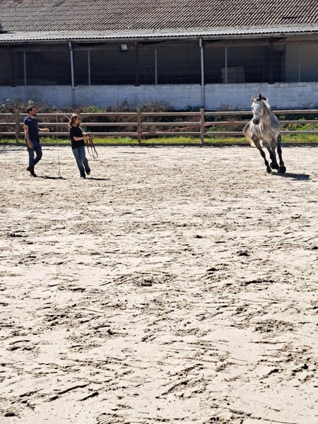 Estoy en el Mood Z es un caballo gelding de Zangersheide de 9 años, con una altura de 173 cm (17.0 manos). Es un hermoso gris con manchas y una expresión dulce, con ojos muy amables. Es un caballo increíblemente tierno y orientado a las personas, que realmente disfruta de la atención humana. Le encanta que lo cepillen, manipulen y pasar tiempo con su jinete o cuidador, formando un fuerte vínculo con quienes lo rodean. Ha competido anteriormente en pruebas de nivel de 1 * y en saltos hasta aproximadamente 1,15 m*, demostrando su calidad y entrenamiento. Debido a una artritis en su pata trasera derecha, ya no es apto para competición ni trabajo intensivo. Adecuado para: Hogar de compañía Paseos suaves (caminar, trotar, pequeño galope según el manejo) Trabajo en tierra y actividades relajadas Temperamento: Es un caballo enérgico y con carácter, por lo que no es recomendable para jinetes principiantes. Sería ideal para un jinete o cuidador experimentado que entienda cómo trabajar con un caballo sensible pero muy amable. Importante: Artritis en la pata trasera derecha Prohibido saltar o realizar trabajos pesados Requiere un manejo correcto y reflexivo Primero el bienestar del caballo, siempre Nuestro principal objetivo es encontrarle un hogar adecuado, amoroso y con conocimientos, y estamos abiertos a discutir condiciones con la persona adecuada. Su bienestar y futuro son mucho más importantes que el precio. Nos importa mucho dónde va, y agradeceríamos mantener un contacto ligero. Sería genial recibir actualizaciones o visitas ocasionales cada pocos meses, pero esto, por supuesto, se puede discutir y respetar la situación del nuevo propietario. Si crees que puedes ofrecerle a este dulce muchacho un hogar amable y adecuado, por favor, ponte en contacto.