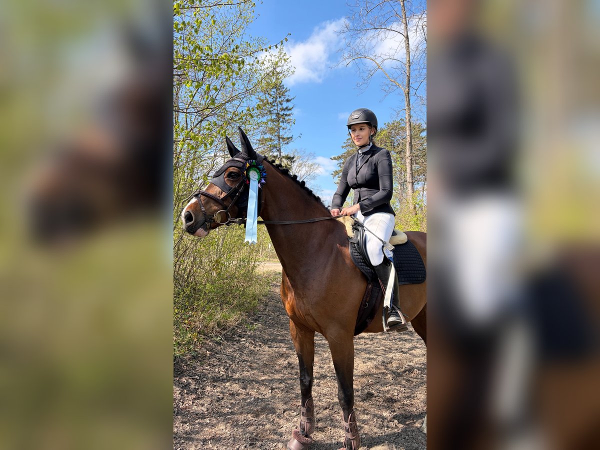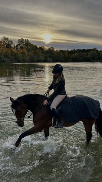 Zum Verkauf steht mein 2015 geborener Wallach Boston (v. Coriano Z) mit einem Stockmaß von ca. 163 cm. Boston ist ein absolutes Verlasspferd. Egal ob im täglichen Umgang oder unter dem Sattel – er ist immer lieb, unkompliziert und bemüht, alles richtig zu machen. Auch auf Turnieren ist er immer super entspannt und brav & lässt sich von nichts beeindrucken. Er wird seit Jahren kontinuierlich auf Turnieren vorgestellt und konnte auch letztes Jahr bis 115 cm schöne Runden zeigen. Er springt alle Arten von Unterbauten und auch das große Wasser springt er Problemlos. Boston ist im Parcours ehrlich und zuverlässig und möchte keinen Fehler machen, benötigt bei höheren Aufgaben jedoch einen Reiter, der ihn unterstützt und ihm die nötige Sicherheit gibt. Er ist angenehm zu sitzen, leicht zu reiten und gibt ein sehr sicheres Gefühl, weshalb ich ihn mir besonders gut für Jugendliche oder als Umsteigerpferd vorstellen kann. Auch im Gelände ist er brav – egal ob alleine oder in der Gruppe. Dinge wie Ausreiten, Schwimmen oder auch mal ohne Sattel bzw. mit Halsring macht er problemlos mit. Im Umgang ist er absolut unkompliziert: verlade- und schmiedefromm, verträglich mit anderen Pferden und war bisher immer gesund. Er kennt sowohl Hänger als auch Lkw fahren. Boston ist seit fünf Jahren in meinem Besitz und war in dieser Zeit sowie auch davor nie verletzt. Die AKU aus 2021 war ohne jeglichen Befund. Eine aktuelle Ankaufsuntersuchung kann selbstverständlich jederzeit auf Kosten des Käufers durchgeführt werden. Ich wünsche mir für Boston einen Bestplatz, wo er weiter gefördert wird und man seinen ehrlichen Charakter zu schätzen weiß. Für weitere Informationen, Fragen oder Videos gerne melden.