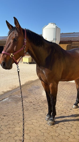 Zangersheider Wallach – Vielseitiger Freizeitbegleiter mit beeindruckender Präsenz Dieser beeindruckende Dunkelbraune Zangersheider Wallach wurde im Jahr 2014 geboren und besticht durch seine elegante Erscheinung sowie seine vielseitigen Einsatzmöglichkeiten. Mit einem Stockmaß von 180 cm bietet er eine beeindruckende Größe, die sowohl im Freizeitbereich als auch in der Dressur eine souveräne Figur macht. Der Wallach überzeugt durch seine angenehme Art und sein freundliches Wesen. Er ist aufmerksam, lernwillig und lässt sich problemlos an verschiedene Aufgaben heranführen. Dank seiner soliden Grundausbildung eignet er sich hervorragend für Reiter, die einen zuverlässigen Partner für ausgedehnte Ausritte, Dressur und Springen suchen. Sein Zangersheider-Hintergrund spiegelt sich in seiner Bewegungsqualität und seinem ausgeprägten Temperament wider. Er ist eher einer der gemütlichen Sorte, benötigt aber eine konsequente, erfahrene, jedoch keine harte Hand im Umgang. Er ist gesund, gepflegt und regelmäßig kontrolliert. Dieses vielseitige Freizeitpferd ist bereit, neue Abenteuer mit seinem zukünftigen Reiter zu erleben. Schweren Herzens wird er in liebevolle Hände abgegeben. Bei Interesse freuen wir uns auf Ihre Kontaktaufnahme, um weitere Details zu besprechen oder einen Proberitt zu vereinbaren. Probereiten wird mit 20€ berechnet um Reittourimus zu vermeiden. Diese werden bei einem erfolgreichen Kauf verrechnet.