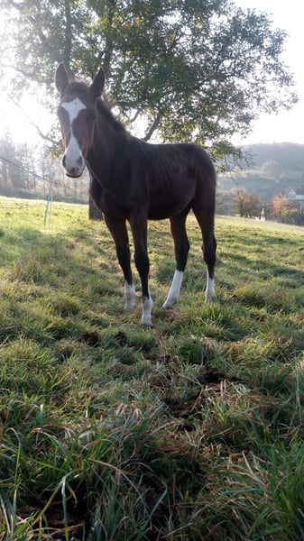 Amicelli E Z ATTENTION!!! SERA CASTRÉ LE 7.5.25 Amicelli est un jeune étalon dynamique avec de bonnes aptitudes au saut d'obstacles. La mère La Luna Z provient de la lignée performante Holsteiner 2067. De cette lignée, plus de 40 étalons ont été approuvés, par exemple Canturano I-III. De la lignée maternelle directe vient l'étalon approuvé Gondoso (Hugo Simon), qui a notamment remporté le Derby de Hambourg. De cette lignée proviennent également de nombreux chevaux ayant connu un succès international, tels que Leonidas (Lars Nieberg), Cattani (Geier Gullikson), Leonardo (Franke Sloothaak), Lordon (Luiciana Diniz) et bien d'autres. La fille de la pleine sœur de La Luna a maintenant 7 ans et est placée 130 cm au niveau international (également issue de notre propre élevage). Le père Aberdeen Z a maintenant 7 ans et est placé à 135 cm. À 5 ans, il a terminé 14ème en finale du Championnat du Monde des jeunes chevaux de saut d'obstacles. Le père de la mère, Latouro N, provient de la lignée Holsteiner 8626. Il a 7 fils approuvés et plusieurs descendants performants au niveau 140-160 cm, comme Lataro, R.O.I.2 et Isolvas Legato. Concernant le MMV Colman, je pense qu'il n'est pas nécessaire d'en dire beaucoup avec une somme de gains de descendants de près de 3 millions d'euros.