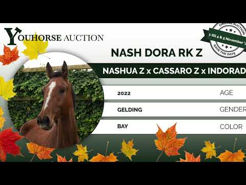 De driejarige Nash Dora RK Z is lichtvoetig, galoppeert goed, heeft werkbaar bloed en toont vermogen. Vader Nashua Z (1.20m springen) is een AES-goedgekeurde hengst van Nabab de Reve uit de 1.60m Grand Prix-merrie Cruisly, de halfzus van de goedgekeurde hengsten President (1.40m springen) en Ulysses M2S (1.60m Grand Prix). Moeder Cidora Z (Cassaro) is gefokt uit de 1.30m springmerrie Vidora (Indorado). Deze lijn gaf ook het 1.60m Grand Prix-paard Edward Himself, gereden door Nona Garson.