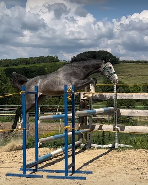 Springtalent sucht neuen Besitzer! Zum Verkauf steht ein wunderschöner Schimmel-Wallach, geboren im Jahr 2022. Mit einem aktuellen Stockmaß von 160 cm ist er perfekt für ambitionierte NachwuchsreiterInnen oder erfahrene ReiterInnen die ein vielversprechendes zukünftiges Springpferd suchen. Der Wallach stammt aus einer renommierten Zuchtlinie und zeigt bereits jetzt viel Talent im Springen. Sein ruhiges freundliches Wesen und seine Lernbereitschaft machen ihn zu einem idealen Partner für den Aufbau im Springsport. Aktuell ist der Wallach anlongiert und wird schonend und mit Ruhe weiter ausgebildet. Bei Interesse oder weiteren Fragen stehe ich gerne zur Verfügung. Vereinbaren Sie jederzeit gerne einen Termin zur Besichtigung und lernen Sie dieses vielversprechende Pferd persönlich kennen!