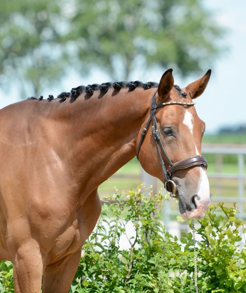 Cloud van de Zietfort Z ist ein robust gebauter, großer Wallach mit einer Stockmaß von 1,74 m. Er wurde im Jahr 2021 geboren und ist somit derzeit 4 Jahre alt. Cloud hat einen fröhlichen und anhänglichen Charakter und ist äußerst liebenswert. Er besticht durch sein beeindruckendes Erscheinungsbild, insbesondere durch seine drei hohen weißen Beine. Dieser Wallach kam im Alter von drei Jahren zu uns auf den Hof und durfte zunächst ein weiteres Jahr in der Aufzucht verbringen, bevor wir mit ihm mit dem Training begonnen haben. Die sportliche Linie dieses Pferdes stammt von seiner Großmutter Vupina ab. Sie brachte Nachkommen wie Bon Coeur, der 1,60 m Springen erreichte, sowie Interessant von de Zietfort mit 1,50 m und Jolet von de Zietfort mit 1,45 m Springen. Cloud von de Zietfort Z wird viermal pro Woche geritten, sowohl im Dressur- als auch im Springtraining. Er ist leicht zu reiten und verhält sich ziemlich brav. Beim Springen lässt er sich problemlos im gleichen Tempo halten und neigt kaum zum Abheben, was dem Reiter ein sicheres Gefühl vermittelt. Er springt die Wechsel links- und rechtsum, hat aber im Parcours noch Schwierigkeiten, was jedoch mit weiterer Erfahrung verbessert werden kann. Der beste Einsatzbereich für Cloud ist wahrscheinlich bei einem ambitionierten Amateurreiter, der weiter mit ihm arbeitet. Wir sind überzeugt, dass er auch viel Freude daran haben würde, im Gelände unterwegs zu sein. Zudem könnte er sich gut als Jagdpferd eignen. Dieses Pferd ist definitiv für eine größere und kräftigere Person geeignet. Im September 2023 wurde er röntgenologisch gründlich untersucht, inklusive Hals- und Rückenaufnahmen. Die Röntgenbilder und der Bericht sind auf Anfrage per E-Mail erhältlich.