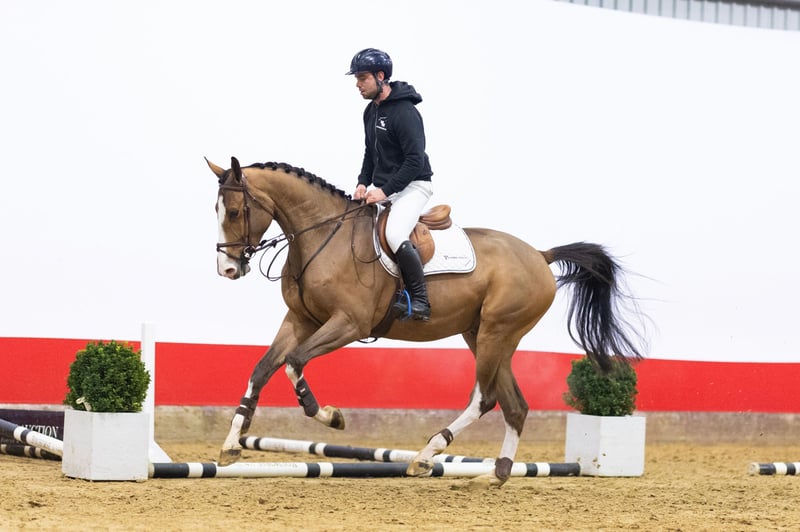 A horse with scope, attitude and rideability Grandominago Z is a horse with impressive scope and a strong presence. He shows spacious movement and has workable, rideable blood. Despite his size, he is already very pleasant to ride and shows sharpness at the jump. Only six weeks under saddle, he already comes back very well from the fence and shows notable strength, where bigger horses at this age often still lack power. He jumps back nicely through the withers towards the rider, creating a comfortable and confident feeling. A horse with a good attitude, overview and clear sport potential. Sire Grandorado TN N.O.P. (Eldorado van de Zeshoek TN x Clinton) belongs to the absolute world elite and competed internationally at 1.60m Grand Prix level. He won multiple CSIO5* classes and Nations Cups, including victories in Rotterdam and Dublin. Grandorado is licensed with KWPN, Holstein, Zangersheide, AES, SF and Hanoverian and is known for passing on scope, canter, reflexes and attitude. He has already produced several international 1.55–1.60m showjumpers. Damline The dam is Douchy d’Argilla Z (Dominator 2000 Z), herself competing at 1.35m level. Dominator 2000 Z competed internationally at 1.70m level and is known for transmitting power, scope and modern jumping technique. The second dam Faranah d’Argilla (Nagano) produced several international sport horses: – Calgary d’Argilla Z (Calvaro Z), international 1.45m – Calgary II d’Argilla Z (Calvaro Z), international 1.45m – Clifton d’Argilla Z (Clinton), international 1.50m – Thunder Bay d’Argilla Z (Thunder van de Zuuthoeve), international 1.45m – Daytona d’Argilla Z (Diamant de Semilly), international 1.40m – Douchy d’Argilla Z (Dominator 2000 Z), 1.35m The third dam Sarah de Saint Pierre (Skippy II) competed internationally at 1.60m level and confirms the exceptional performance of this damline. From this line come, among others: – Csarano d’Argilla Z (Coriano), international 1.60m – Calais d’Argilla Z (Calvaro Z), international 1.60m – Aquira de Saint Pierre (Nabab de Rêve), international 1.50m – Wanda de Saint Pierre (Bon Ami), international 1.40m A damline with an exceptional amount of international sport, multiple 1.60m horses and proven durability over generations. This horse was previously auctioned, but as the buyer did not meet his obligations, the payment was never completed. The horse itself is exactly as described. Perhaps it’s no coincidence the previous buyer didn’t pay — this horse was simply meant for you!