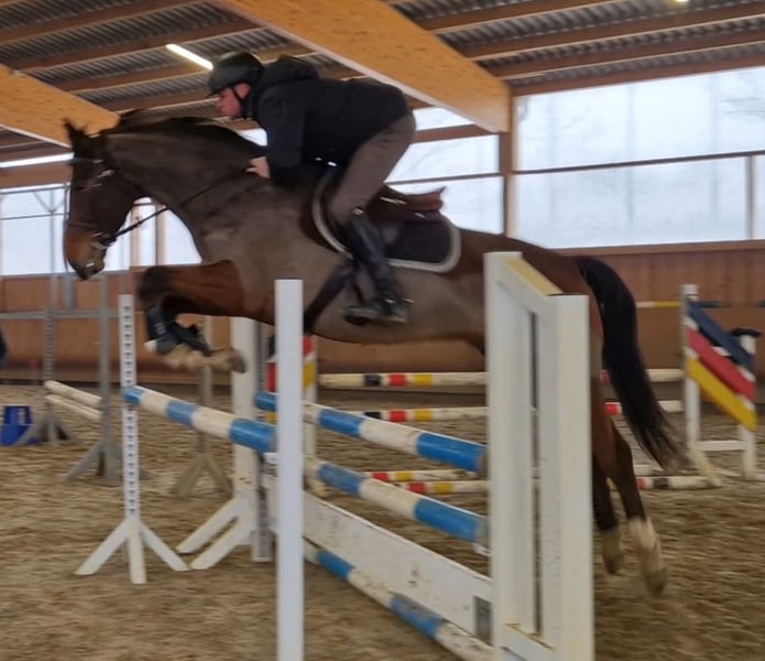 Zum Verkauf steht ein sympathischer 6-jähriger brauner Wallach von Origi d’O x For Pleasure x Don Juan. Aktuell misst er ca. 1,66 m und ist in Zangersheide eingetragen. Otto wurde 3-jährig angeritten, durfte anschließend noch einmal in Ruhe zu Hause nachreifen und befindet sich nun wieder im Beritt. Dabei zeigt er sich jederzeit sehr kooperativ, brav und unerschrocken. Er möchte seinem Reiter immer gefallen, denkt mit und versucht, alles richtig zu machen. Diese Einstellung macht ihn zu einem sehr angenehmen Partner in der täglichen Arbeit. Er verfügt bereits über erste Turniererfahrungen inklusive Platzierung und zeigt sich auch außerhalb des Vierecks bzw. Springplatzes sehr zuverlässig. Die vorhandenen Videos unterstreichen dies besonders schön, unter anderem mit einer jugendlichen Reiterin beim zweiten Mal Reiten sowie bei seiner zweiten Runde auf dem Geländeplatz, die er souverän und unkompliziert absolviert. Otto bringt damit beste Voraussetzungen als Nachwuchspferd für den Spring- und Vielseitigkeitssport mit. Er überzeugt durch seine Rittigkeit, guten Grundgangarten, seine positive Arbeitseinstellung und seine unerschrockene Art. Ein guter TÜV liegt vor, sowohl aus dem Alter von 3 als auch 4 Jahren. Zusätzlich sind Freilauffotos als 2-Jähriger vorhanden. Ein ehrliches, engagiertes Nachwuchspferd für Reiter, die ein braves Pferd mit Vermögen, Einstellung und Perspektive suchen.