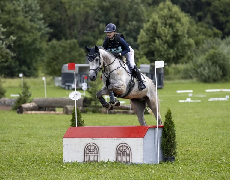 Fly ist ein vielseitiger und lernwilliger Partner mit sehr freundlichem Temperament. Er zeigt sich zuverlässig im Springen und in der Vielseitigkeit und überzeugt besonders durch seine Übersicht am Sprung, seinen Mut und seine Flexibilität. Er hat Platzierungen auf B2-Niveau in der Vielseitigkeit und wurde bis B3 im Indoor-Cross vorgestellt. Im Springen konnte er bereits über 105 cm gewinnen. Fly ist ein sportlicher Partner mit viel Vermögen und Ambitionen und geht stets mit Zug zum Sprung. Im Umgang ist er unkompliziert: verlade- und schmiedefromm, gut als Handpferd und gerne im Gelände unterwegs. Zuhause zeigt er sich sehr verschmust, menschenbezogen und verträglich mit anderen Pferden. Trotz seiner umgänglichen Art ist er kein Anfängerpferd, da er noch zu jugendlichem Übermut neigt. Er sucht einen souveränen Reiter, der ihn mit Gefühl weiter fördert und an neue Aufgaben heranführt. Geeignet für ambitionierte Nachwuchsreiter oder erfahrene Reiter mit Turnierambitionen. Bei Interesse freue ich mich über eine Nachricht.