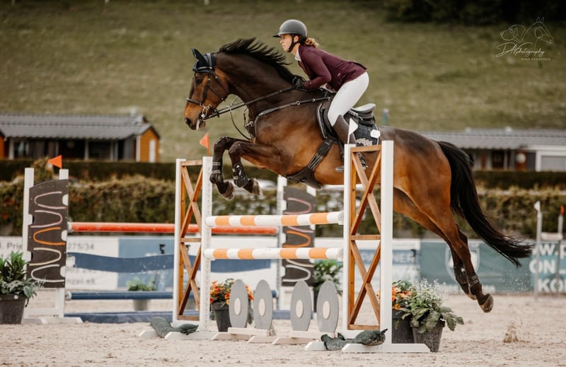 Ten ogierek jest bardzo łatwy i prosty w prowadzeniu, z doświadczeniem w skokach przez przeszkody do 130 cm. Do 110 cm jest również odpowiedni dla mniej doświadczonego jeźdźca. Przy wyższych przeszkodach wykazuje przyjemny temperament, z odpowiednią energią oraz mocnym, czujnym skokiem. 🖇️ T&Mhorses&Ponies