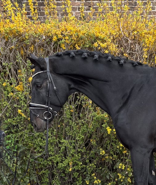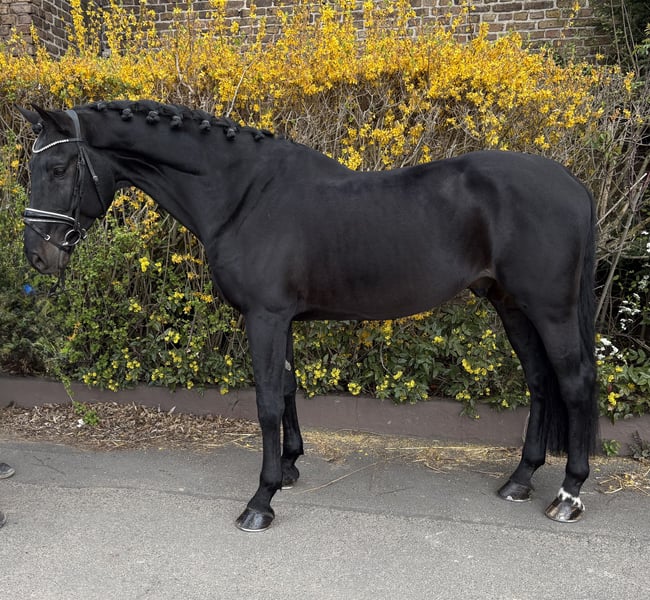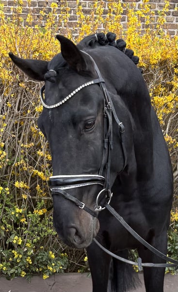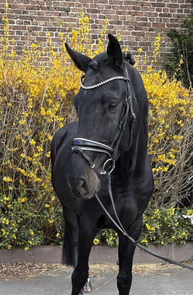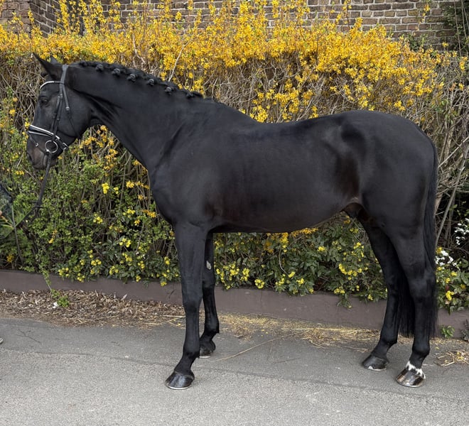 Im Hengsttyp stehender, schön anzusehender Wallach mit guten Grundgangarten und Charakter. Der Wallach ist einsatzbereit in A-Dressuren und macht Springwechsel. Er ist brav, gut zu sitzen und leicht durchs Genick zu reiten. Springen möchte er nicht mehr. Geländeritte kennt er bereits und aktuelle Röntgenbilder liegen vor.