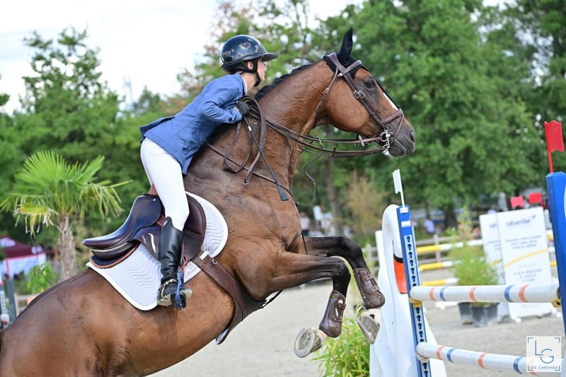 Top Zangersheide mare Course Pours’huit Z, 10 years old, 16.8 hh 🧬 Con Air x Pagena Palmarès: • Qualified for the 2024 French Amateur Elite Championships and participated in 2025, finishing 6th in the hunt • 39 top placements (including preliminaries) since the start of her career • Winner of the 4-year-old Classic Cycle Final at Fontainebleau • CSI* 130: 3rd/37 • CSI* 130: 10th/54 • Amateur Elite: approximately ten placings in the past year with an amateur rider Beautiful appearance, harmonious and muscular mare • Very easy to handle: grooming, transport, shoeing, lovely on foot • Ridden in a simple bit • Fully up to date on all vaccinations and health checks • Lives in a box and paddock during the day, can be kept outside • Excellent temperament both under saddle and on the ground: energetic, strong, respectful, with heart, very good jumping ability • Well-trained in dressage: head on the wall, shoulder-in, changes of leg, flying changes, etc. • Rides alone or in company outdoors Experienced mare currently competing at 125 cm in show jumping with an amateur rider • Consistently jumps 130/135 cm at home with an amateur rider • Potential for 135/140 cm minimum with good chemistry • Radio check: OK • More photos and videos available upon request